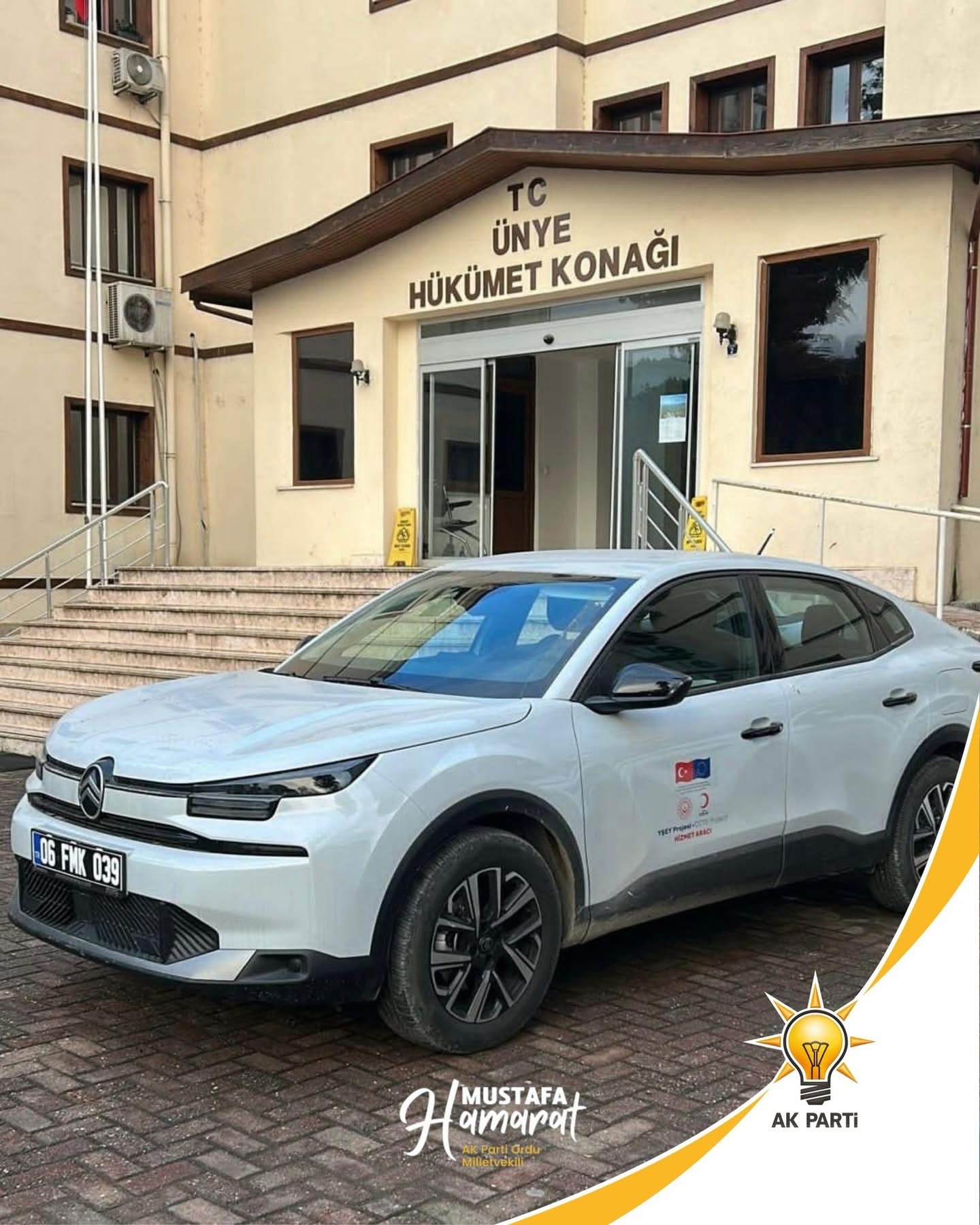 Ünye SYDV’nin saha ziyaretleri ve denetim faaliyetlerini daha hızlı ve etkin şekilde yürütebilmesi amacıyla, Aile ve Sosyal Hizmetler Bakanlığı tarafından temin edilen 2025 model, otomatik, C segment sedan Citroën C4X araç alım süreci, Mustafa Hamarat’ın takibi ve desteğiyle tamamlandı.